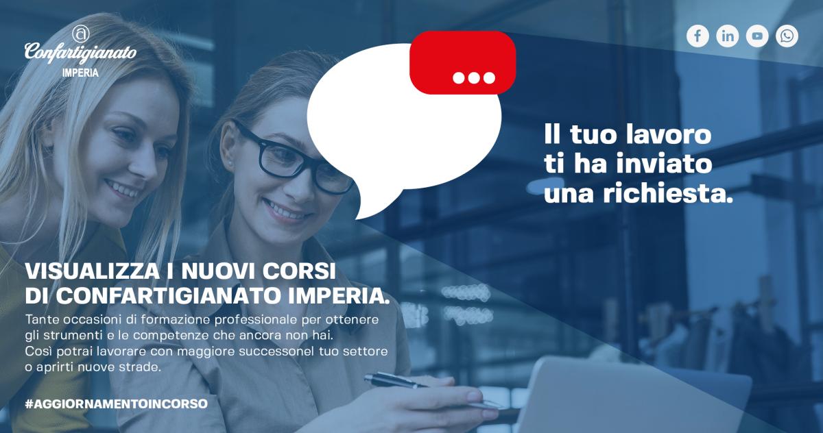 Non attendere l’occasione giusta, creala insieme a noi. Confartigianato Imperia, dal 1945, è al fianco di chi lavora e oggi ti offre nuove occasioni di formazione per ottenere gli strumenti e le competenze che ancora non hai. Così potrai lavorare con maggiore successo nel tuo settore o aprirti nuove opportunità. Rafforza la tua posizione professionale!