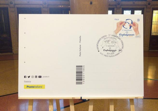 Per celebrare il 75esimo anniversario della fondazione della Confartigianato Genova, anche l'emissione di un francobollo da parte del ministero dello Sviluppo economico e di Poste italiane. Il francobollo commemora proprio l’eroico gesto di quel gruppo di artigiani che, il giorno stesso della Liberazione, in un clima generale di festeggiamenti, decise di ricostituire immediatamente la propria associazione sciolta dal fascismo, guardando con lungimiranza al futuro e ponendo le basi per il riconoscimento dell'artigianato, attraverso la sua tutela e sviluppo e la presenza del ruolo delle organizzazioni sindacali nella Costituzione Italiana.